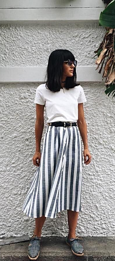 El tercero son las faldas midi yo se que ya an estado de moda hace un tiempo pero creo que este año con tendencia de lo sport estan volviendo con fuerza ya que esta falda es súper versátil más abajo les dejo varios modelos de cómo usarles. y me encantan las que vienen en rayas, no se si yo pero siento que este año las rayas están súper IN.